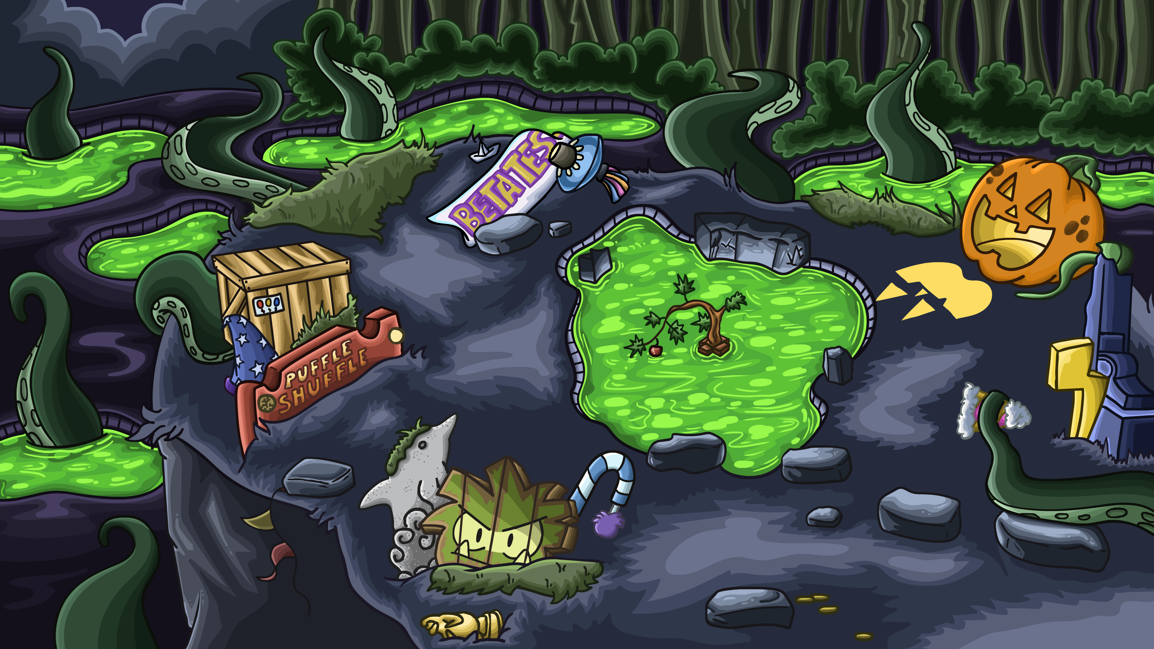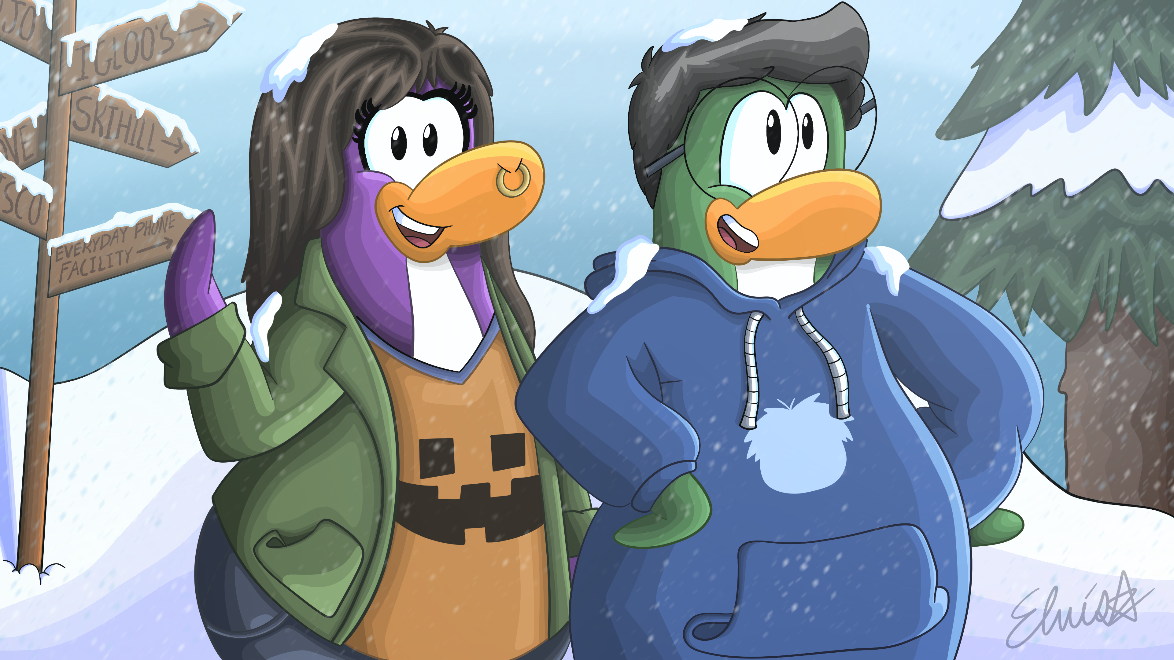 This gallery showcases official New Club Penguin artwork including event assets, themed environment pieces, and promotional graphics created to match the game's visual style.